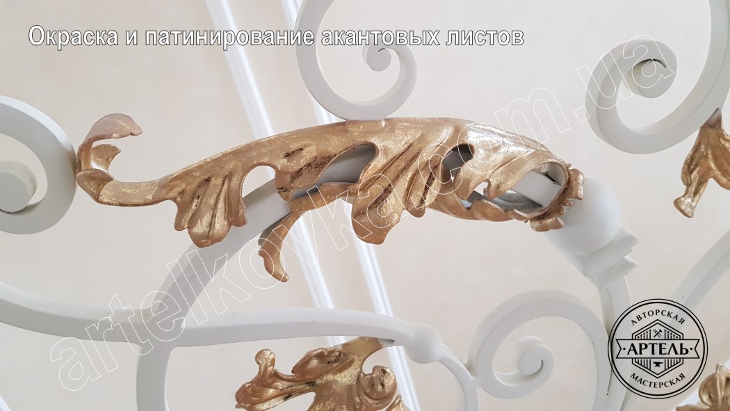 Для проектирования и дальнейшего производства кованых перил необходимо грамотно и точно произвести замеры лестницы. На этапе замеров на ступенях еще не лежали мраморные проступи. Замеры производились по черновой бетонной лестнице. Производство перил производилось параллельно с изготовлением мраморных проступей. После тщательных замеров была спроектирована будущая лестница с учетом будущих ступеней. Кованые перила для будущей лестницы были изготовлены параллельно с мрамором. После монтажа мраморных ступеней мы приехали на предварительный монтаж наших кованых перил. Предварительный монтаж дает нам возможность произвести все слесарно-сварочные работы до окончательной окраски изделия. После предварительного монтажа изделий мы забрали их на окончательную отделку и окрасу. Финальный монтаж кованых перил при таком подходе к производству занимает пол дня и производится без пыли и шума.После финального монтажа листья были покрыты сусальным золотом, что подчеркнуло всю красоту и изысканность изделия.